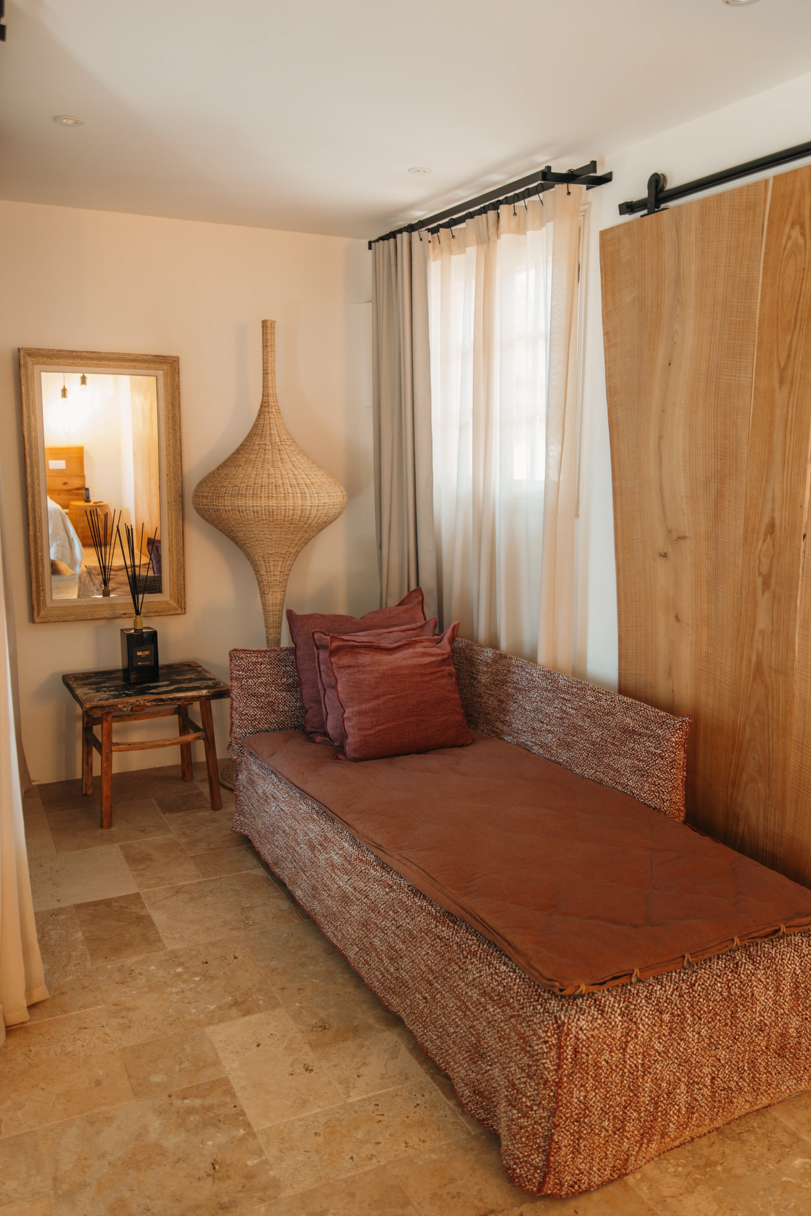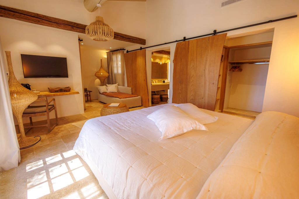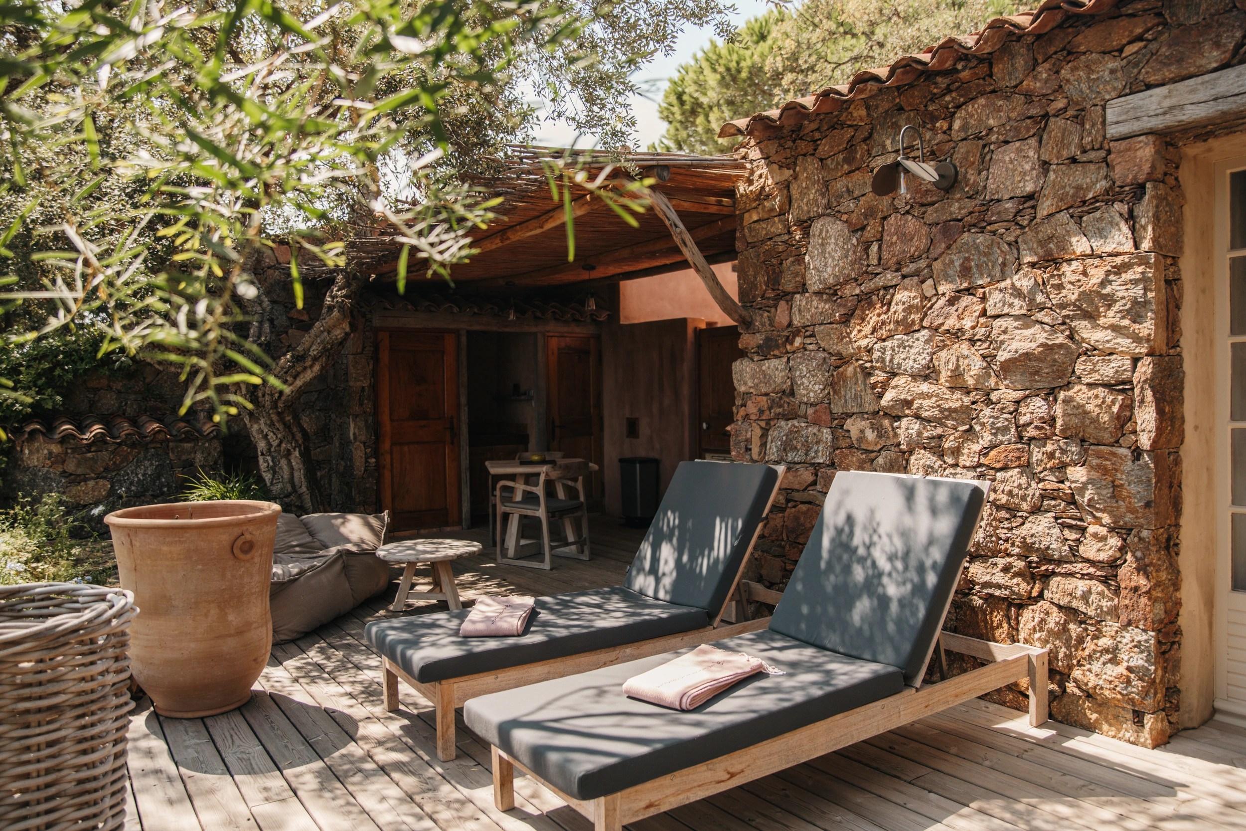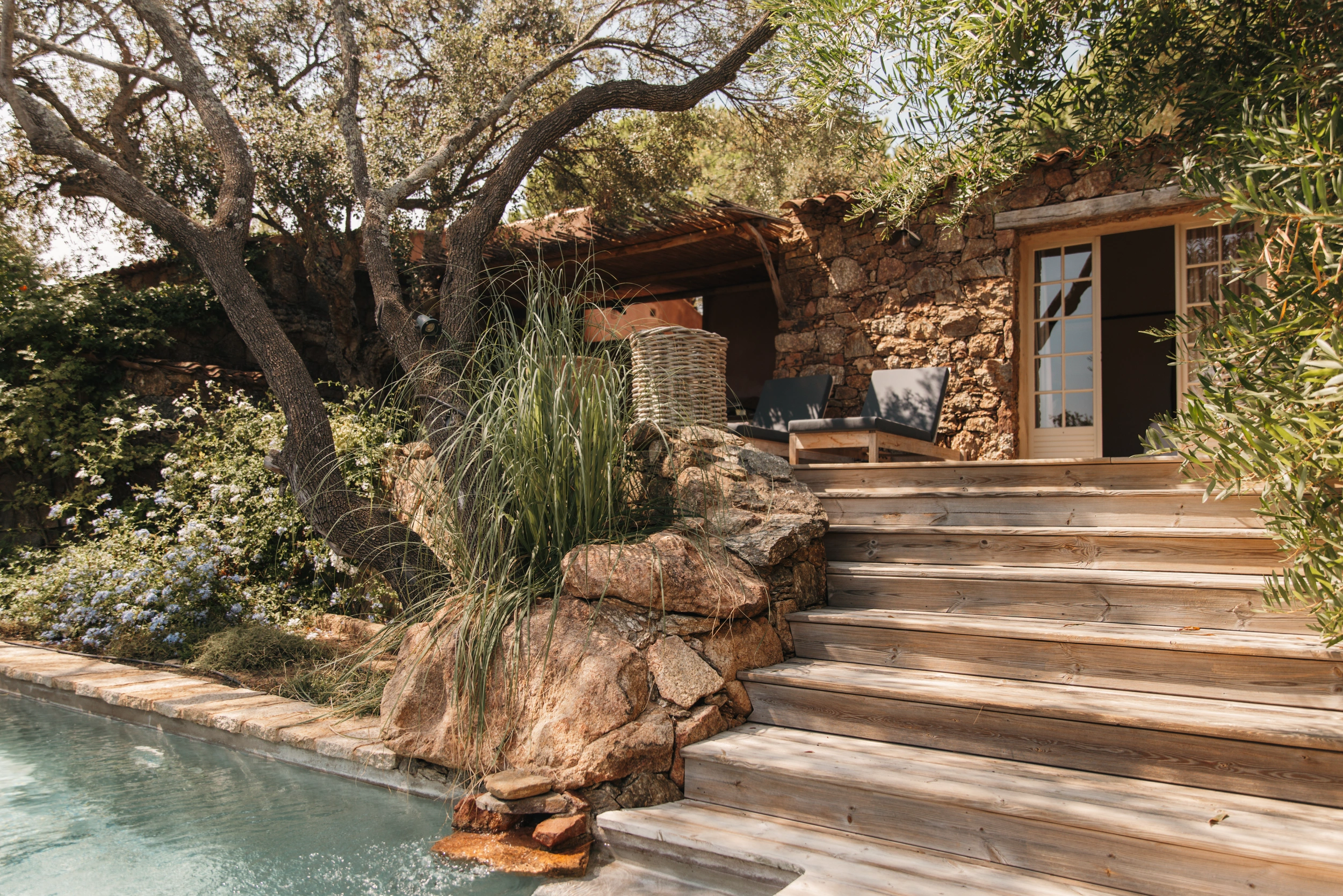 Avec sa piscine nichée dans le maquis, la pool suite Arone est une invitation à la relaxation. Seulement quelques marches vous séparent de ce bassin avec vue sur la mer, tandis qu’à l’intérieur, la décoration zen crée une atmosphère sereine, à l’image du séjour que vous méritez.